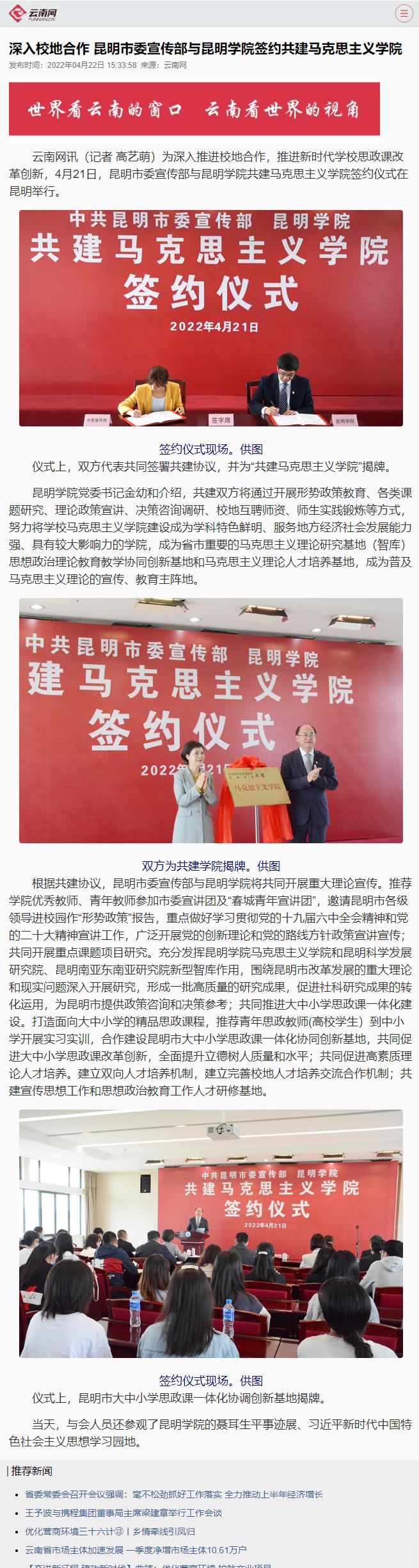 深入校地合作 昆明市委宣传部与今年会签约共建马克思主义学院