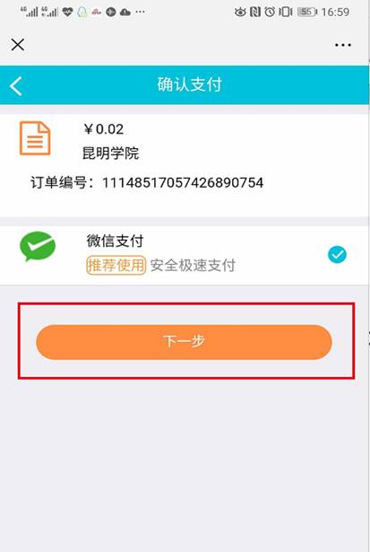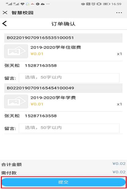 第五步:再次核对姓名、缴费项目、缴费金额,确认无误后-->提交-->下一步。
