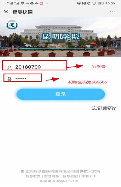 第三步:输入学号和密码(初始密码666666)进行登录,初次登录必须修改密码-->输入手机号-->获取短信验证码-->设置新密码(修改后的密码请务必牢记,将用于今后年度缴费操作)。